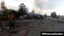 - Бул жерде дагы деле эки машинеде, цистернада газ бар. Азыр өрткө каршы агенттигинен лаборатория келатат. Ошондой эле Юстиция министрлигинен комиссия лабораториясы келип, жеринде изилдеп, жыйынтык чыгаргандан кийин бул жерде толук кандуу өзгөчө кырдаалдар абалы алынат.